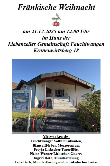 Mitwirkende:Feuchtwanger VolksmusikantenBianca Hörber, MezzosopranFreyja Liebscher TenorflöteHeinz-Werner Liebscher, GitarreIngrid Roth, MundartlesungFritz Bach, Mundartlesung und musikalischer Leiter